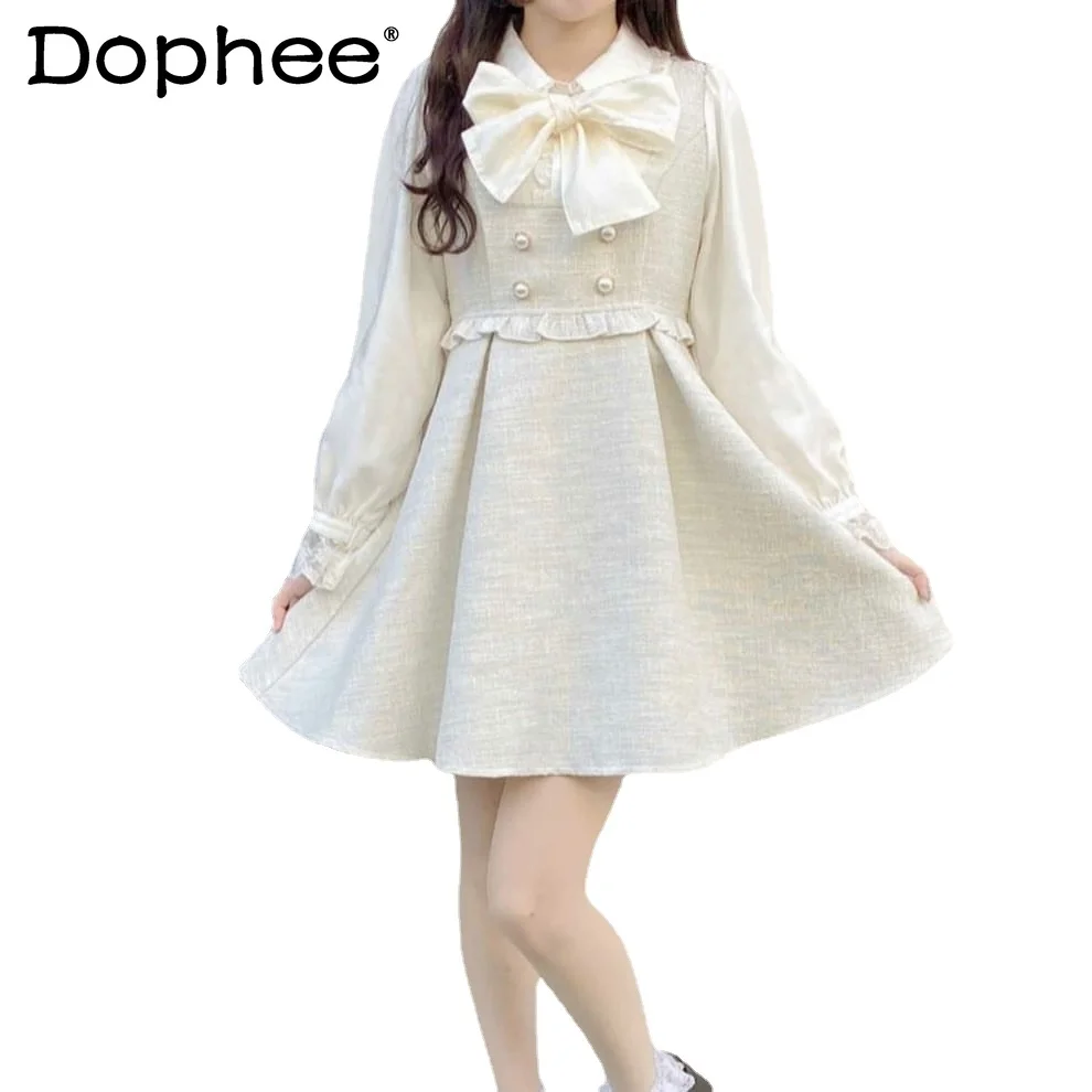 Японское платье Rojita для девушек с длинным рукавом, шелковый шарф, милое короткое мини-платье из сериала «Мина»