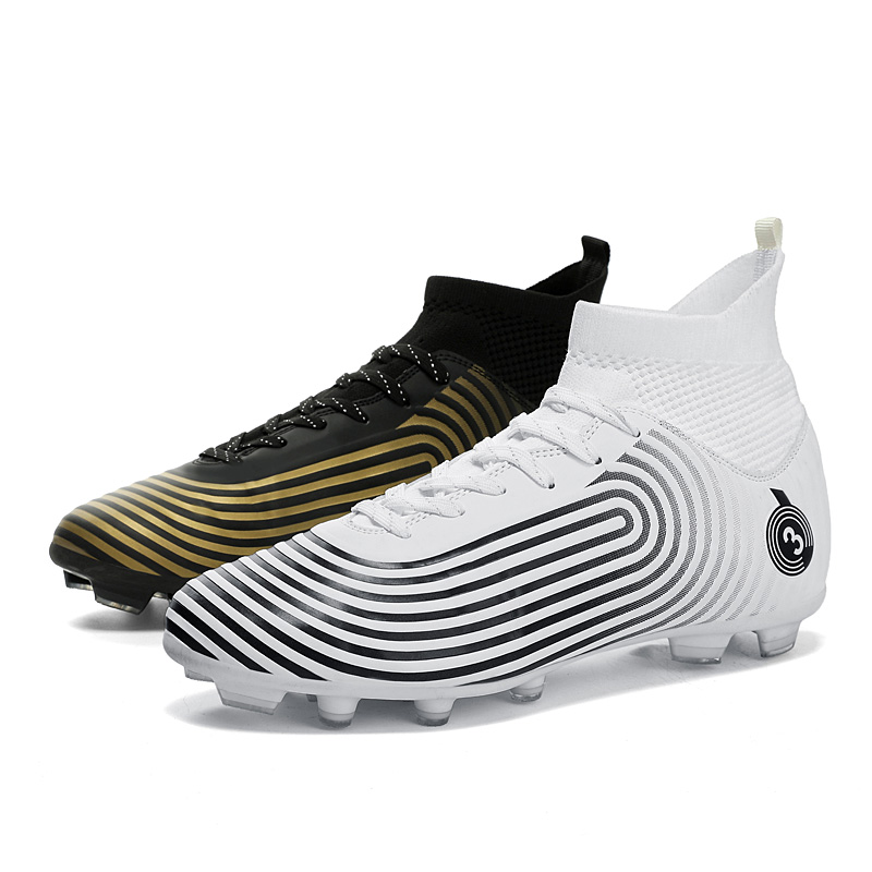 Футбольные бутсы для детей и подростков с амортизацией, износостойкостью, балансировкой и высоким верхом Peter pan, черный/белый