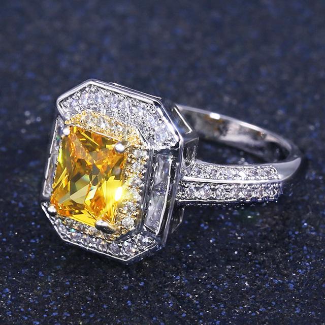 Яркие желтые кольца CZ для женщин, великолепный подарок на годовщину для женщин, нежная леди, роскошные аксессуары, ювелирные изделия для вечеринок 6