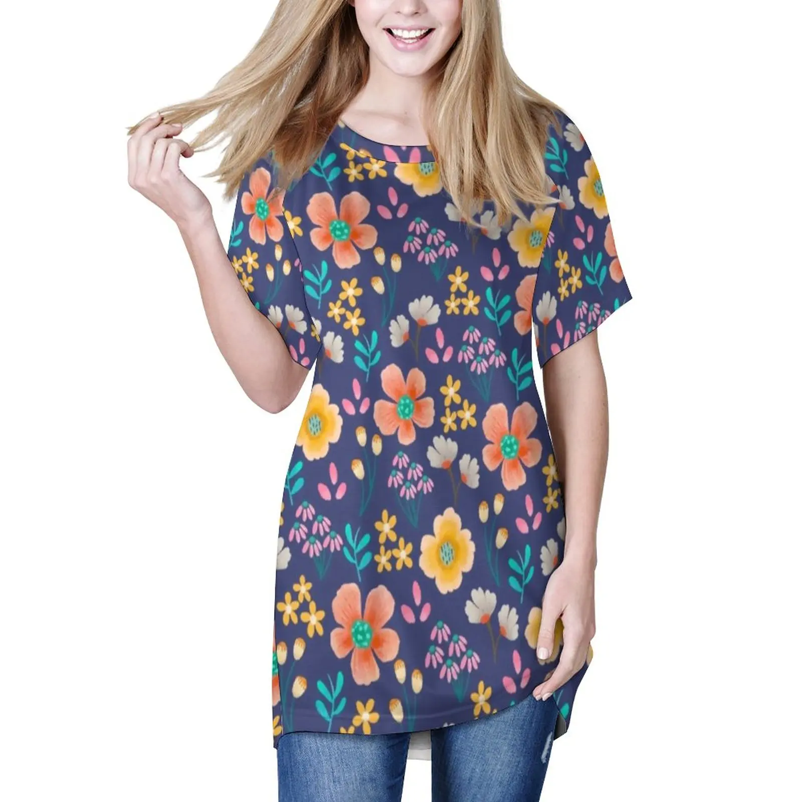 Яркие яркие футболки с цветами, милая корейская модная футболка оверсайз с цветочным принтом, эстетичная футболка, привлекательный Длинный...