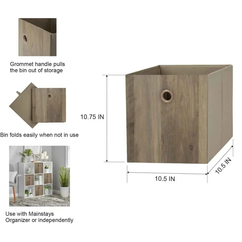 Ящики для хранения в виде страз (10,5x10,5 дюйма), 4 упаковки, деревенская коричневая древесина