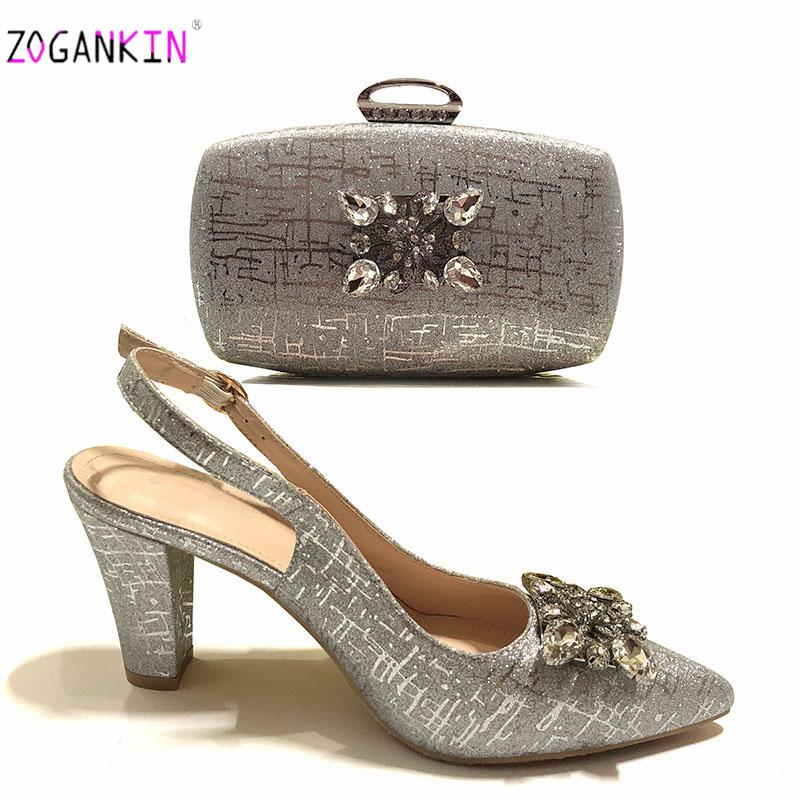 Dress Shoes Mature Nigerian Women Royal Wedding Party And Bag To Match With Shinning Crystal In Silver Color Italian Style Set, Black