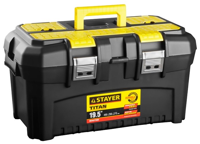 Ящик с органайзером 49 см x 29 см x 27 см, пластик, ручка, STAYER TITAN-19 (38016-19), Черный, TITAN-19