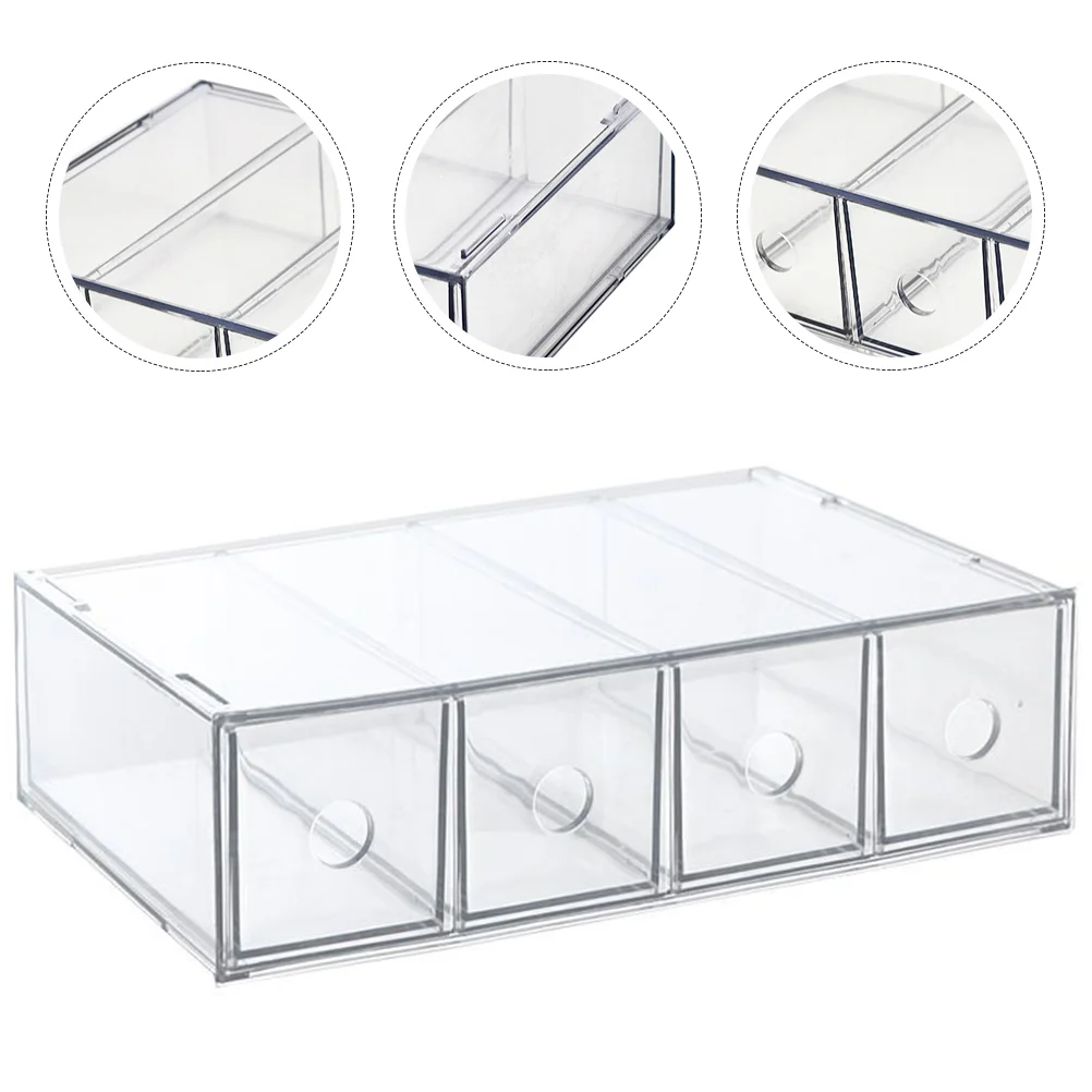 Ящик с 4 отделениями, акриловый Органайзер для хранения косметики, домашний комод, органайзер для косметики
