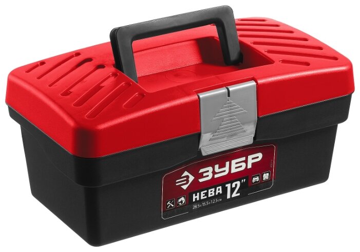 Ящик 28.5 см x 15.5 см x 12.5 см, пластик, ручка, ЗУБР Нева-12 (38323-12), Красный, Нева-12