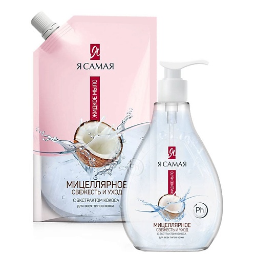 Я САМАЯ Жидкое мыло мицеллярное с экстрактом кокоса флакон и дой-пак 750, Жидкое мыло мицеллярное с экстрактом кокоса флакон и дой-пак