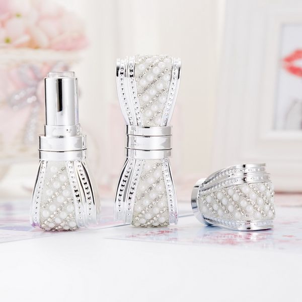 белый имитация pearl bowknot губная помада пробки 12.1mm diy бальзам для губ трубки пустые косметические красоты губ rouge перезаправляемые