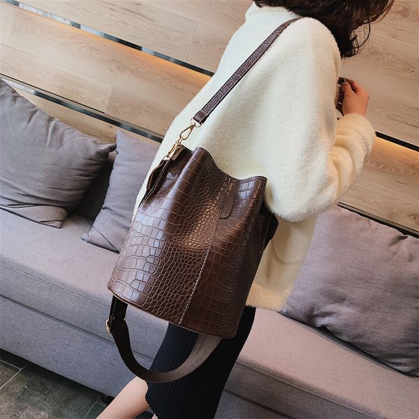 большая сумка женская 2020 новый стиль крокодил шаблон плеча ведро сумка большой емкости широкополосные сумки на ремне