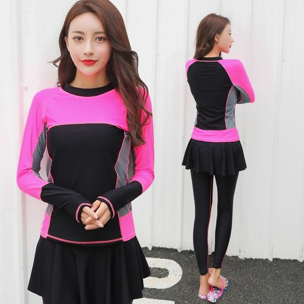 большой размер сплит длинный рукав с брюками купальник брюки юбка сексуальный спортивный студент дополнительный купальник, White;black