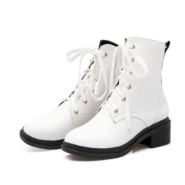 большой размер 34-43 круглый toe пряжка сапоги для женщин tie лодыжки снег сапоги на каблуках мода теплая зима весна осень повседневная обув, Black