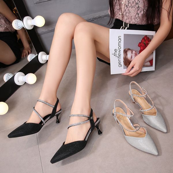 большой размер 41-43 fat wide мода указал sexy неглубоко сандалии женщин рот тонкий heeled новый летний малый размер 32, Black