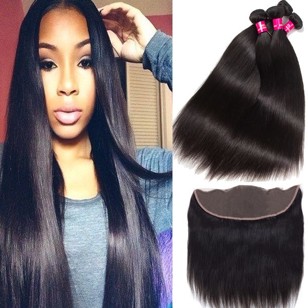 brazilian hair straight 3 bundles with 13x4 ear to ear lace lace frontal closure 100% unprocessed brazilian peruvian straight human hair