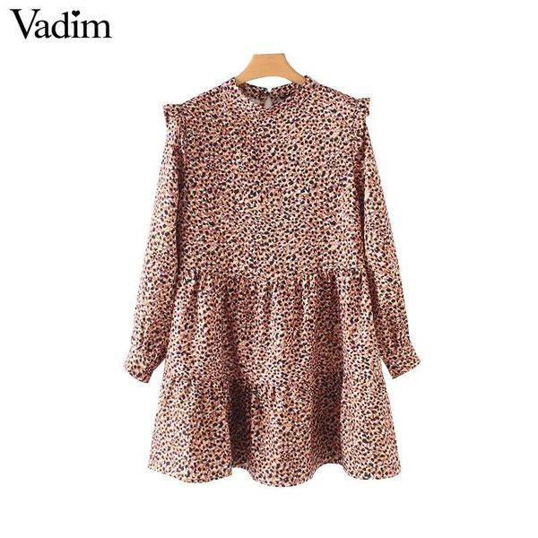 vadim sweet ruffled leopard mini dress animal patttern long sleeve straight female wild stylish dresses vestidos mujer qb316