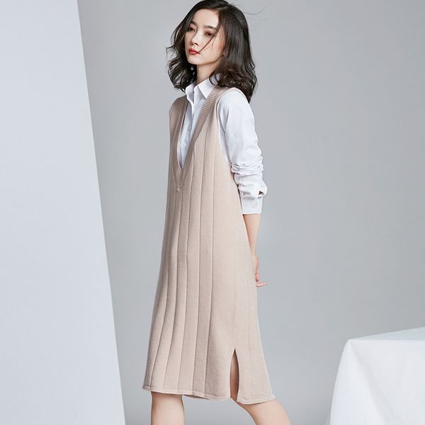вязаный жилет 2020 осень новой вязаный сыпучих рукава v-образный вырез средней длина пуловер свитер свитер, White;black