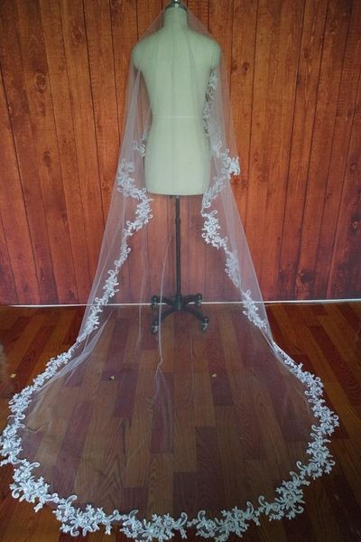 горячая sall один слой белый слоновой кости свадебная фата кружева края собор lehgth бисером с гребнем фата, Black