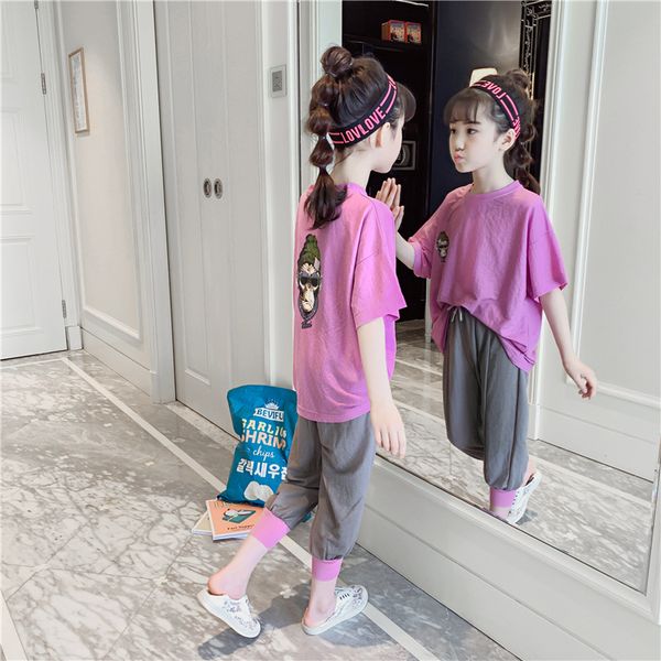девушки тонкой костюмные летние 2020 новых женщин вскользь короткие рукава весной и летом моды большого детский two-piece set, White