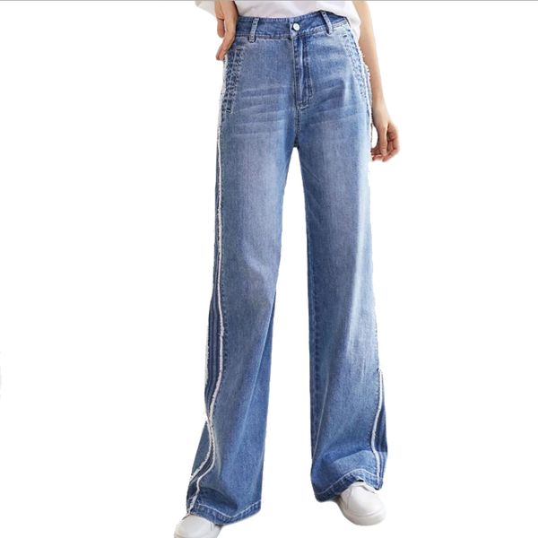 джинсы женской весны и осень универсального случайных новых брюк широких ног брюк женщин высокой талия черных технологии прямая трубка свобо, Blue