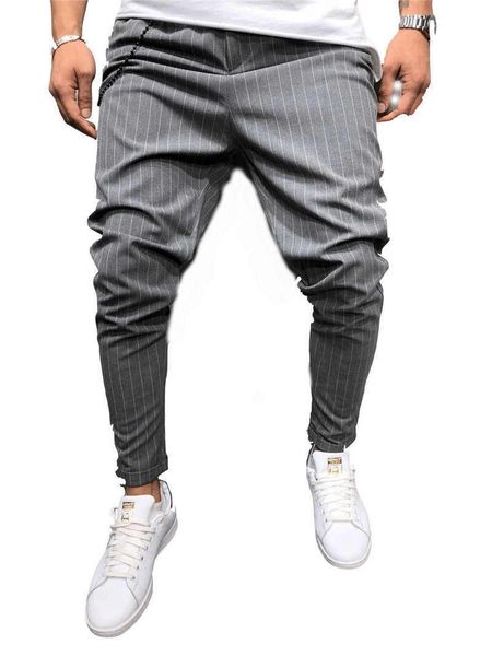 дизайнерские мужские брюки полосатый хип-хоп длинные брюки весна осень отверстие свободные короткие causaul мужские брюки, Black