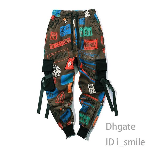 дизайнерские мужские свободные брюки tide бренд мужской хип-хоп слоган печатные буквы повседневные брюки, Black