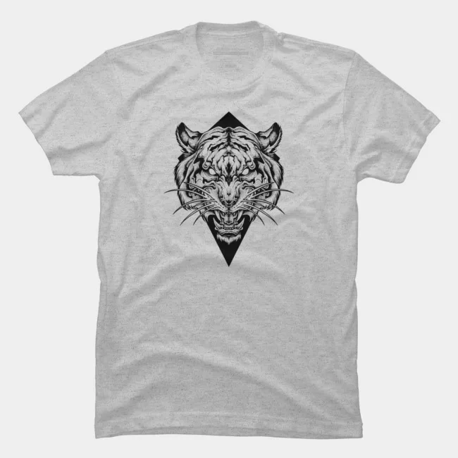 Summer Fashion Printed men's T-shirt 100% Cotton Tiger Tattoo Unique Creative Short Sleeve Graphics