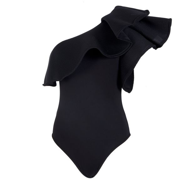 женская комбинезон 2019 новая мода женщина одежда sexy одно плечо ruffled bodysuit трико tops romper сетки трико drop доставка, Black;white
