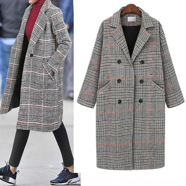 женская одежда шерсть шерсть рыхлый утолщенной средней длины плед шерстяное пальто шерстяное пальто женщин, Black
