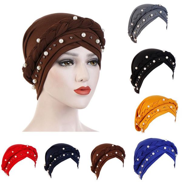 женщины бисероплетения индия hat мусульманские хиджабы 2020 сборка раки chemo beanie тюрбан wrap cap мусульманских шляпы женщин, Blue;gray