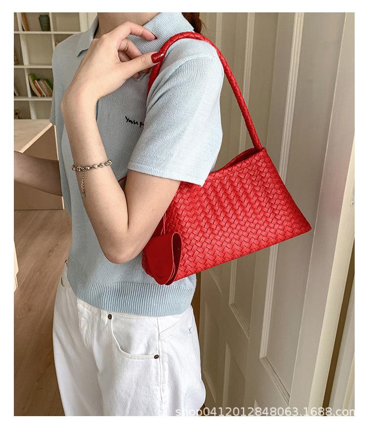 инс ретро портативная женская сумка популярная плетеная темпераментная сумка подмышку 2025 новая универсальная повседневная сумка большой вместимости красный
