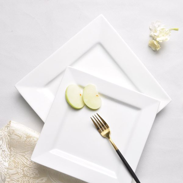 квадратная западная кухня плоская тарелка отель спаржа стейк торт паста тарелка 23.3х2.5 см белая керамическая плита re458