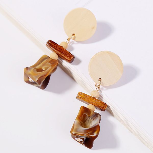 корейский стиль моды площади круглый деревянный падение серьги для женщин 2020 модная геометрическая смола мотаться серьги партии ювелирные, Silver
