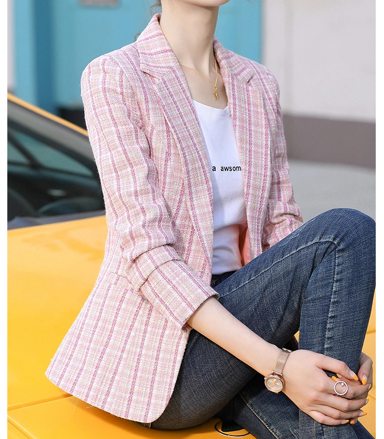 костюм женский, блейзер женский, женская куртка, клетчатый приталенный Блейзер, женская розовая куртка, женское повседневное пальто, верхня...