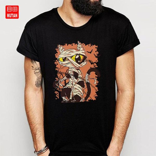 кошка мумия hallowen футболка, White;black