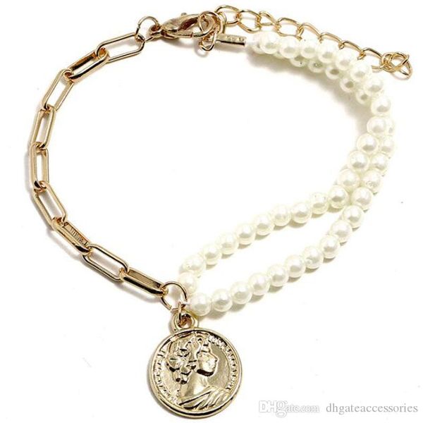 красота голова монеты подвески браслеты личность мода женский браслет европа и америка простых двойной pearl ювелирных изделия из бисера, Golden;silver