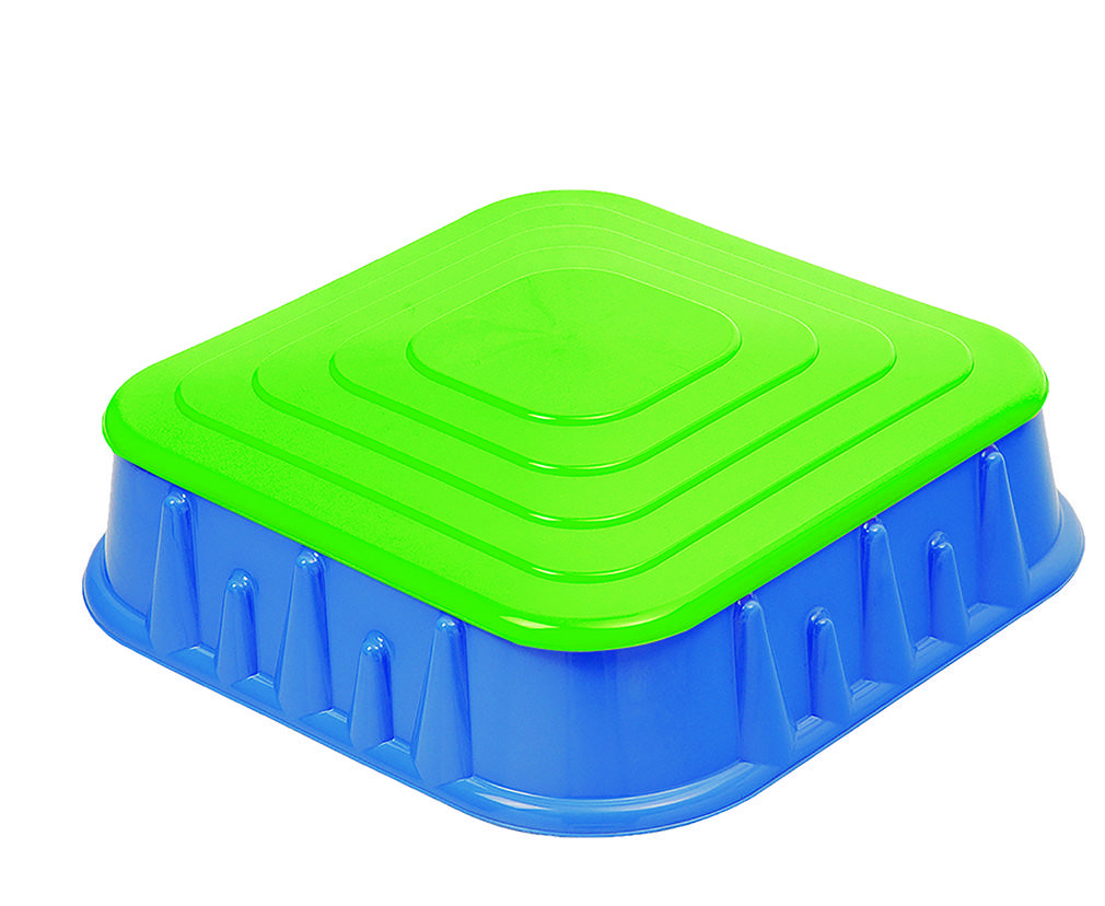 Детская Песочница с крышкой, 77x77x23 см, квадратная, синий, зеленый, пластик (04-516), Разные цвета