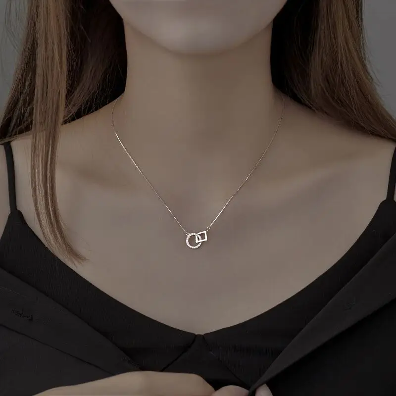 кулоны и подвески бижутерия духи женские подвескМодное квадратное и круглое ожерелье для женщин, милая цепочка до ключиц с кулоном из фиани...