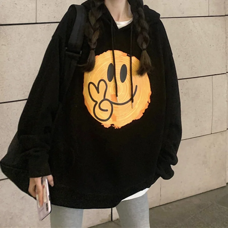 Chic Hoodie Fall 2021 New Funny Printed Lovers Loose Large Long Sleeve Small Women's Wear