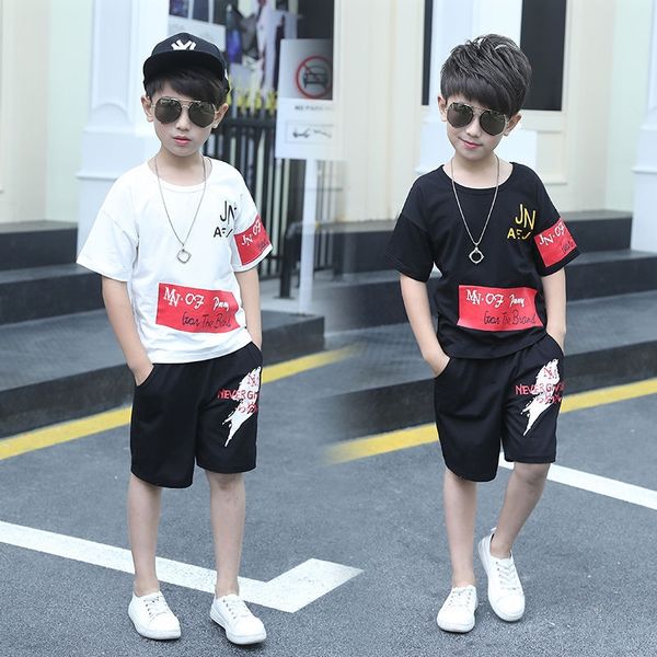 лето мальчики мода лето qj5dj мальчики одежда нового 2020 mediu костюм новый 2020 детских средний и большие детские с короткими рукавами спо