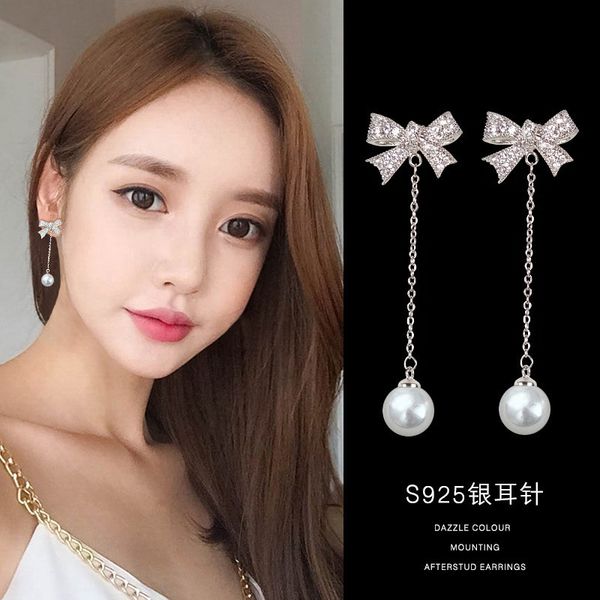 bow stud earrings womens-style pearl korean temperament simple earrings long drop earrings ear jewelry