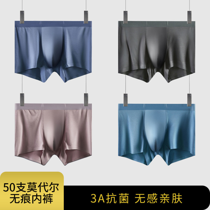 50 pcs. modal men's tracels bacteriostatic solid color boxer boys' middle waist seamls underwear 9 colors, White;black