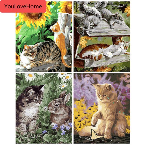 масляная живопись по номерам наборы животных рисунок холст ручная роспись кошка diy picture art home decoration подарок красивая живопись по