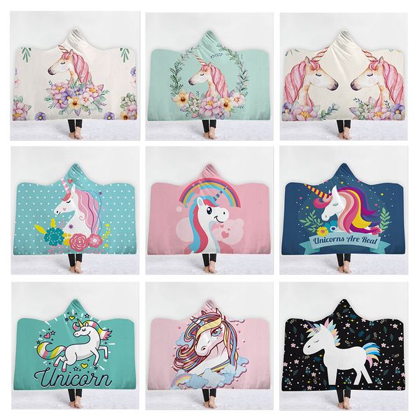 cute unicorn serials hooded blanket angel wings sherpa fleece wearable blanket with hat colorful home textiles for sofa