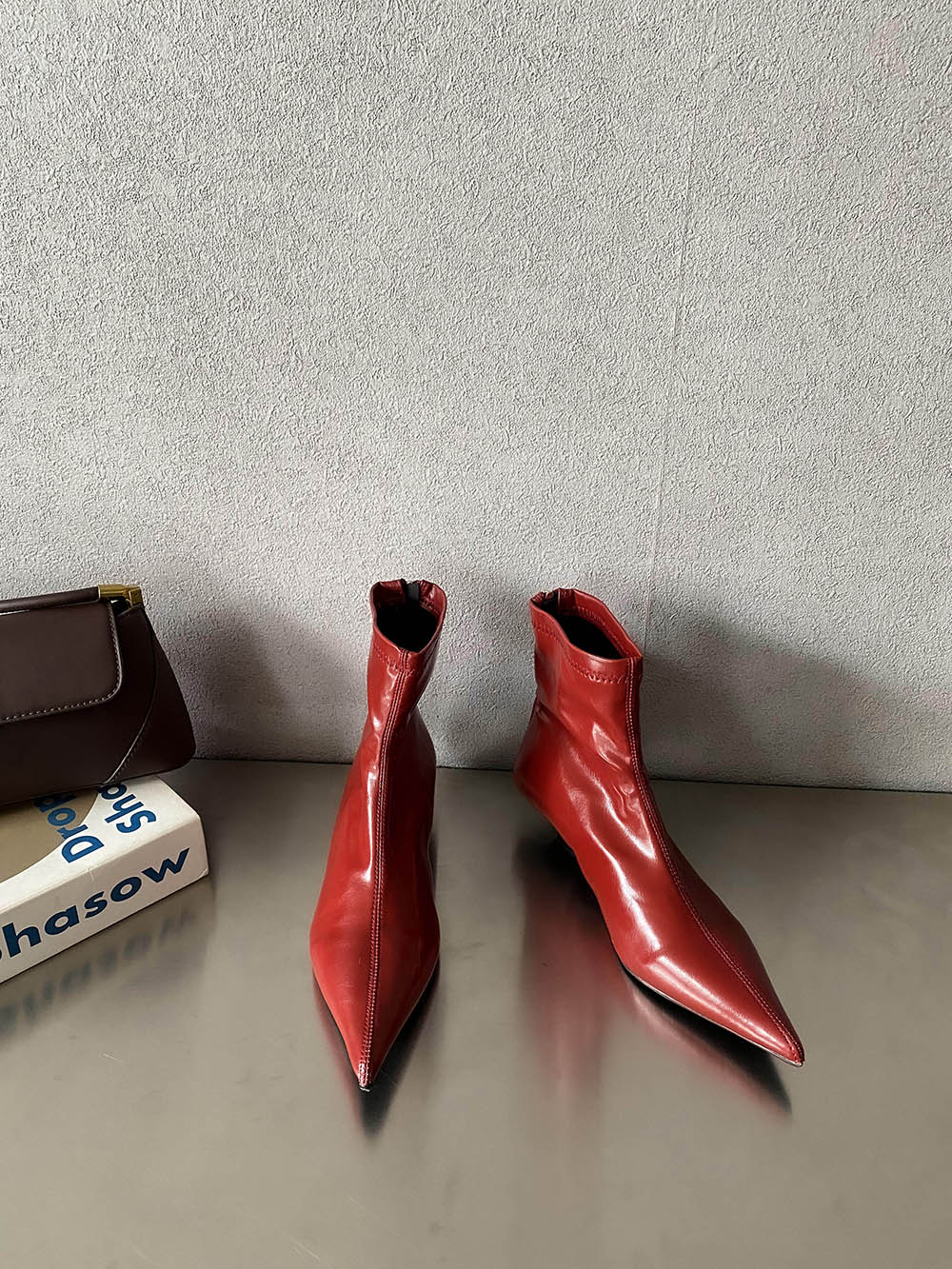 мода Модные женские ботильоны Ботинки-носки Ботинки на танкетке Средний каблук Черные Белые Красные Эластичные Ботинки Молния сзади Зима Осень Короткие Ботинки 35-39 250 красный