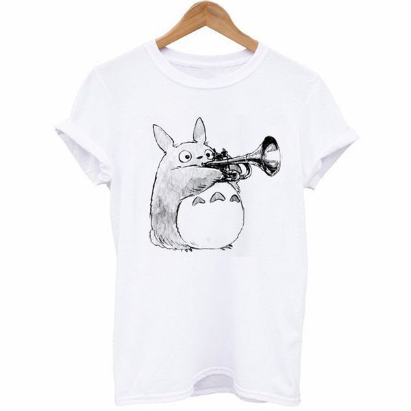 мода лето белая футболка женщины топы тис harajuku 3d с коротким рукавом тоторо печать смешные tshirt женщины тис tops, White