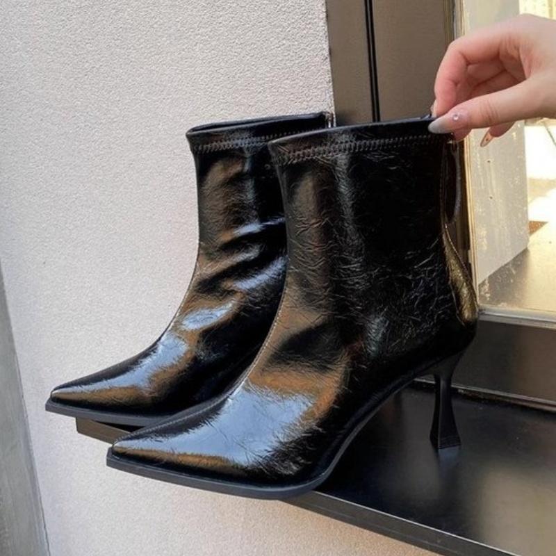 мода сексуальные заостренные носки на высоком каблуке женские ботильоны челси кожаные туфли зима 2025 тренд новые офисные элегантные туфли туфли-лодочки Botas Mujer 40 чёрный