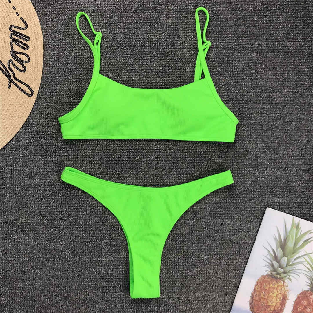 мода сексуальный неоновый желтый стринги бикини женские купальники стринги купальник женский комплект бикини купальный костюм ребристый S неоновый зеленый