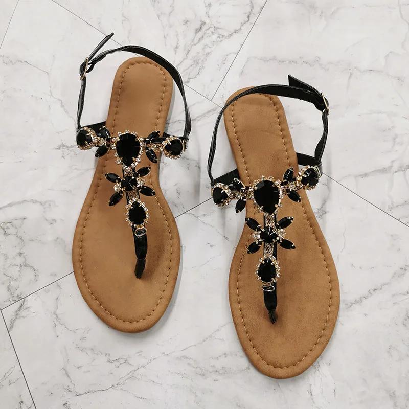 мода 2024 Летняя мода Женские сандалии со стразами Простые и удобные повседневные туфли с пряжкой для женщин Sandalias De Mujer 40 чёрный