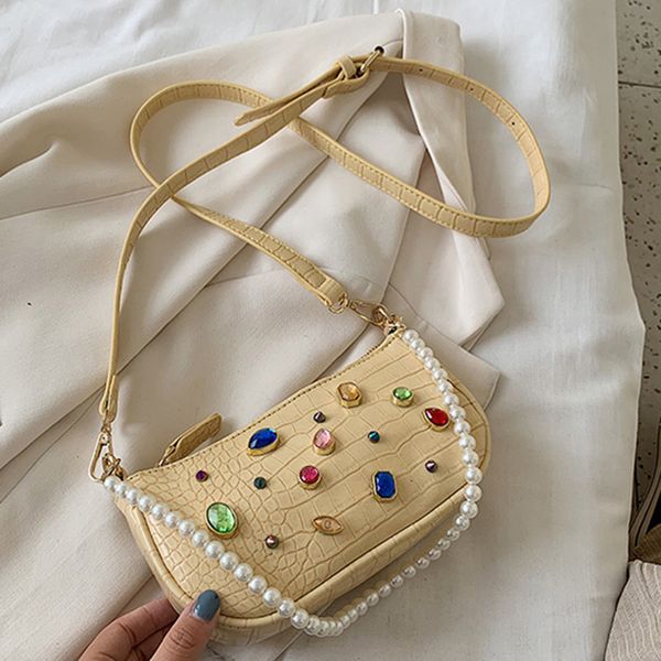 мода pu кожа багет сумки для женщин 2020 trend pearl gemstone малого плеча сумка хобо кошельки lady travel bag