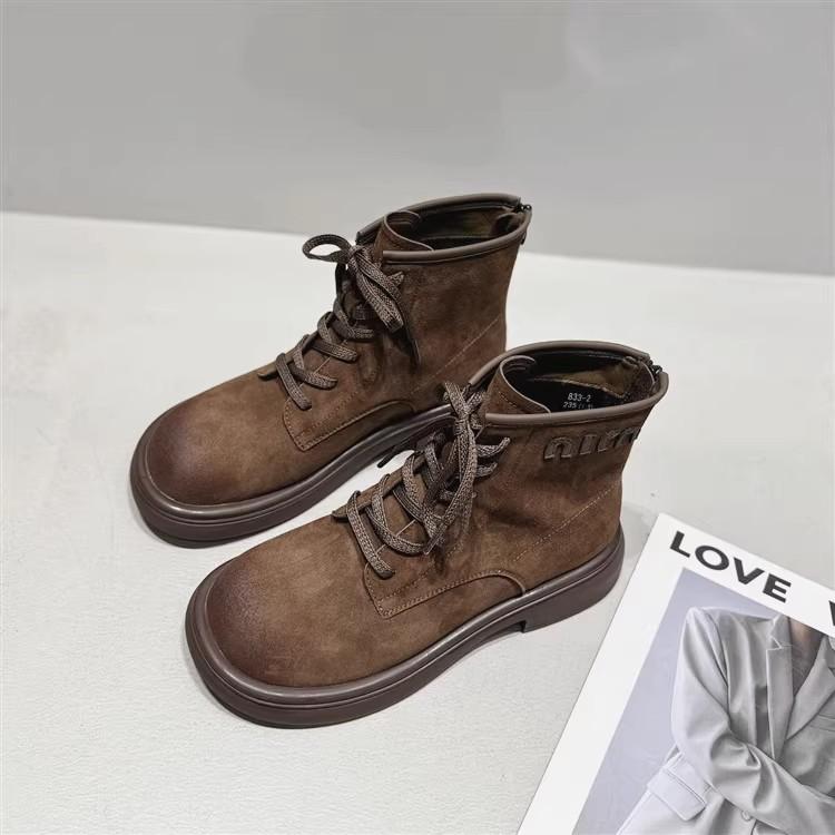 модные женские замшевые ботильоны на платформе для снега модные повседневные кроссовки на среднем каблуке зимняя обувь 2025 года тренд ретро спорт на шнуровке Botas Mujer 40 темно-коричневого