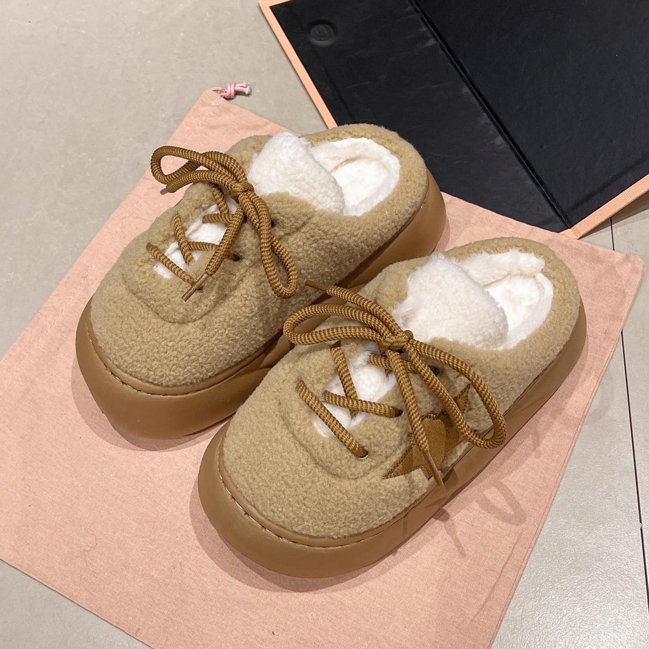 модные женские плюшевые тапочки на толстой подошве, зимние новые теплые тапочки на шнуровке, домашняя повседневная хлопковая обувь для женщин 40-41 хаки