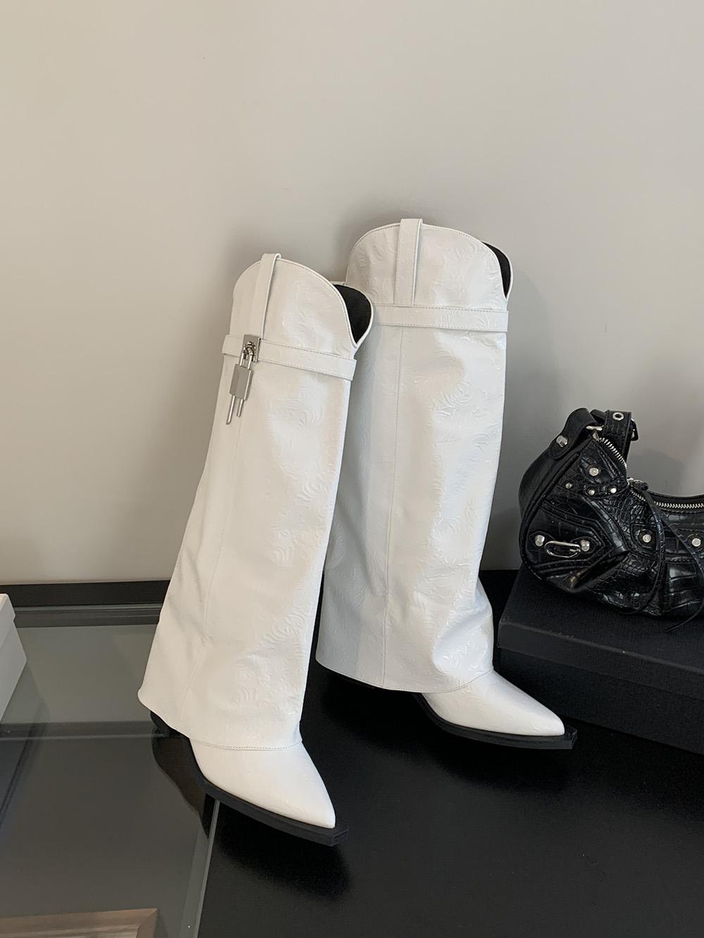 модные зимние женские сапоги до колена черные белые с заклепками на толстом каблуке сексуальные модные туфли-лодочки для вечеринок женские ботинки челси женские 5.5 белый